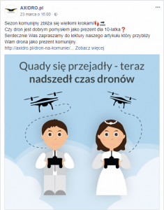 Za miesiąc o tej porze znajdziemy się w samym środku sezonu komunijnego. Już w maju cała rzesza ubranych na biało trzecioklasistów jak co roku przystąpi do Pierwszej Komunii. Dla rodziców dzieci oznacza to konieczność zorganizowania większej lub mniejszej uroczystości, zaproszeni goście będą natomiast szukać odpowiednich prezentów na tę okazję. Czasu jest już naprawdę niewiele, więc jeśli jeszcze do tej pory nie przygotowałeś kampanii marketingowej nakierowanej na te majowe uroczystości, to musisz zabrać się za to jak najprędzej!